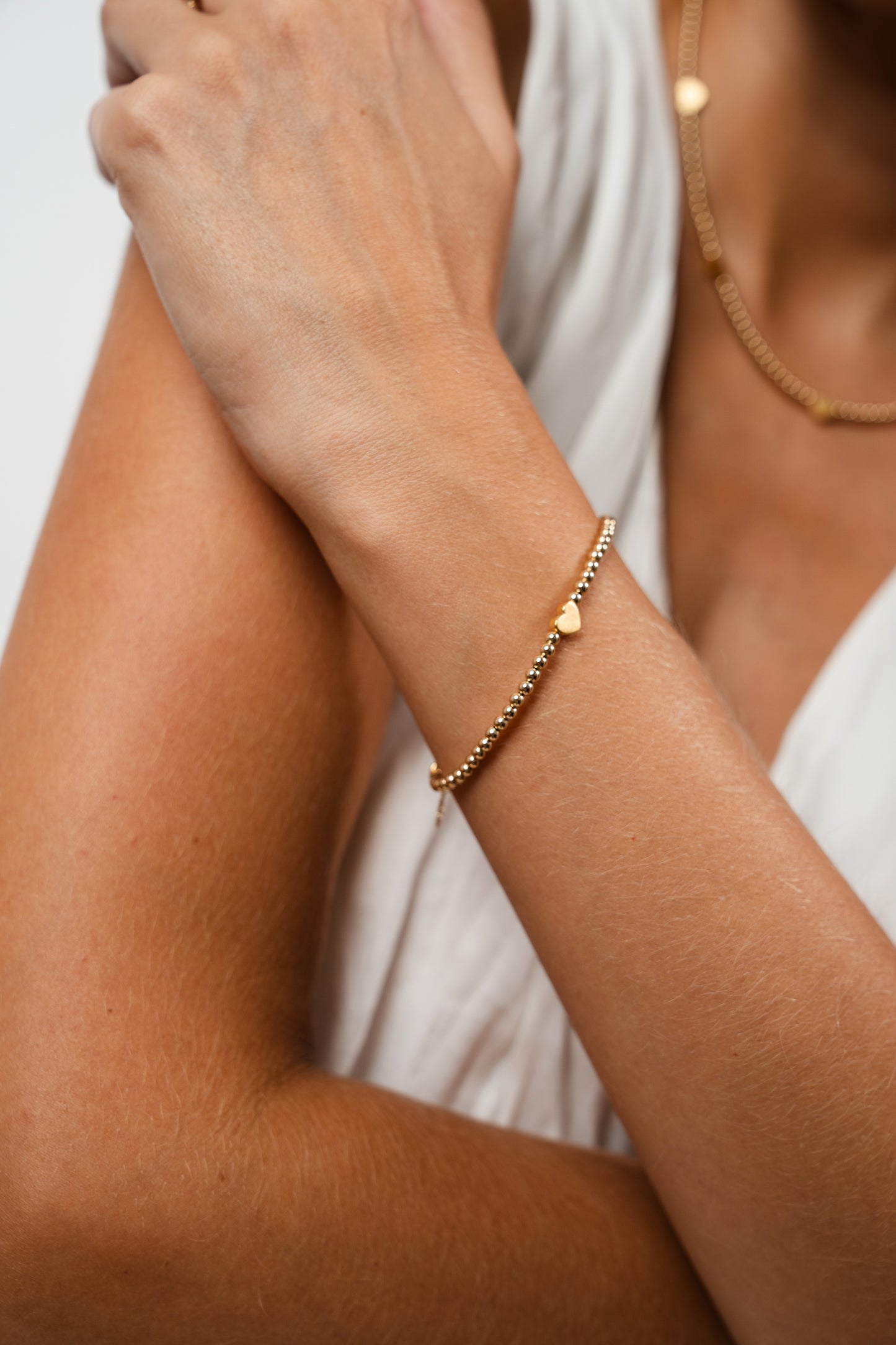 The Holiday Heart Bundle includes the Golden Heart Necklace, Bracelet, and Ring—each hand-crafted with 3 mm gold-filled beads and radiant heart accents. A meaningful set that celebrates warmth, connection, and timeless elegance for the season and beyond.