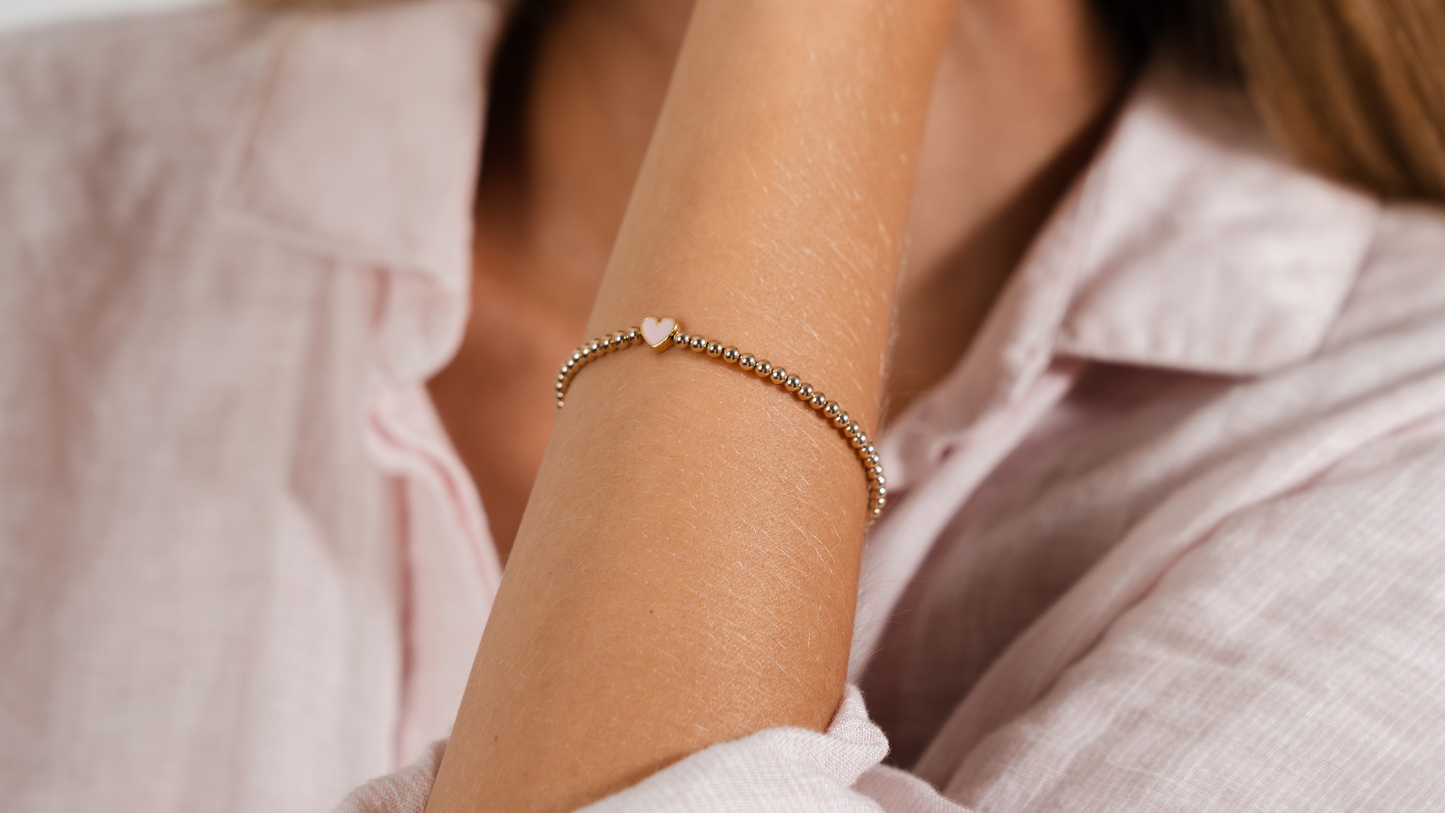 Fall in love with our sweetest stack yet. Purchase the Cherry and Blush Happy Heart Bracelets together and enjoy 10% off!