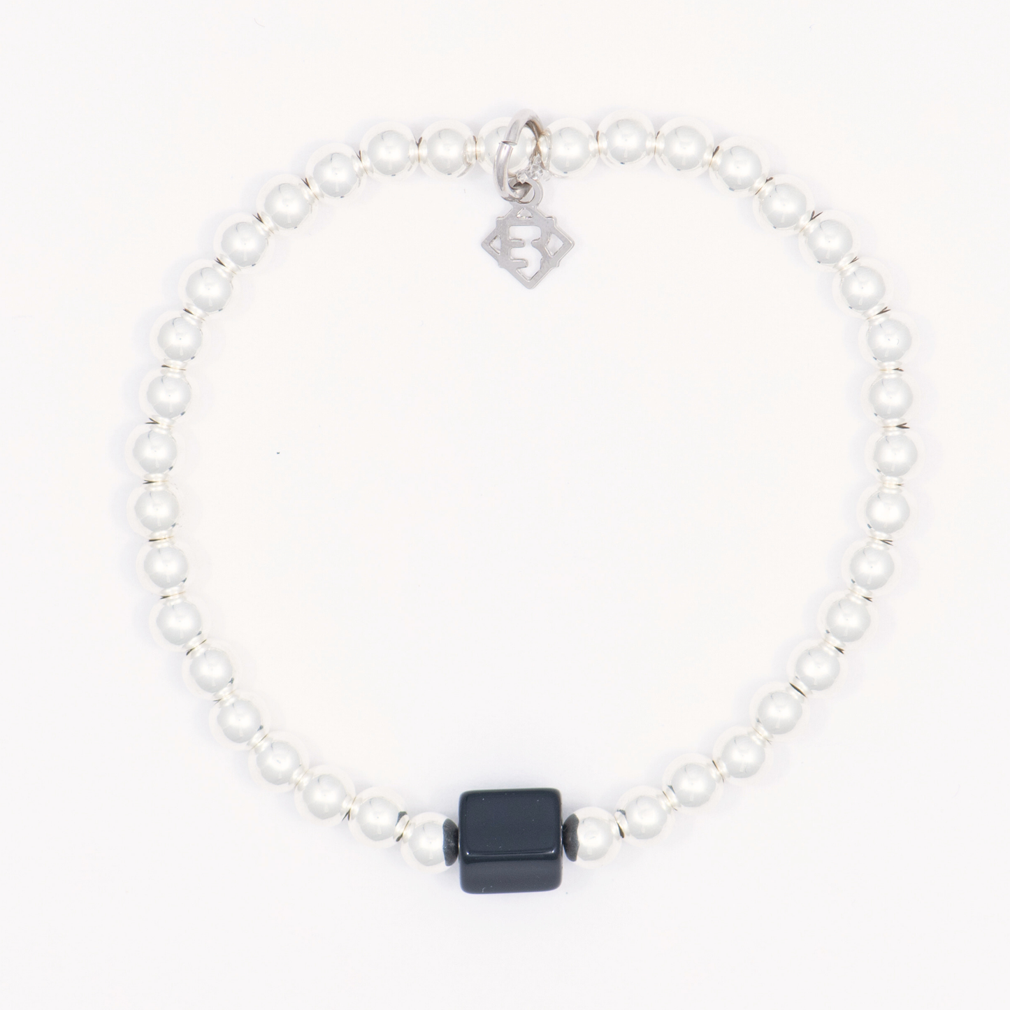 A striking statement bracelet featuring 6 mm gold-filled or silver beads paired with contrasting matte black onyx, finished with the signature ER charm. Hand-beaded on premium elastic with subtle stretch; water-friendly and made to stand out whether worn alone or layered.