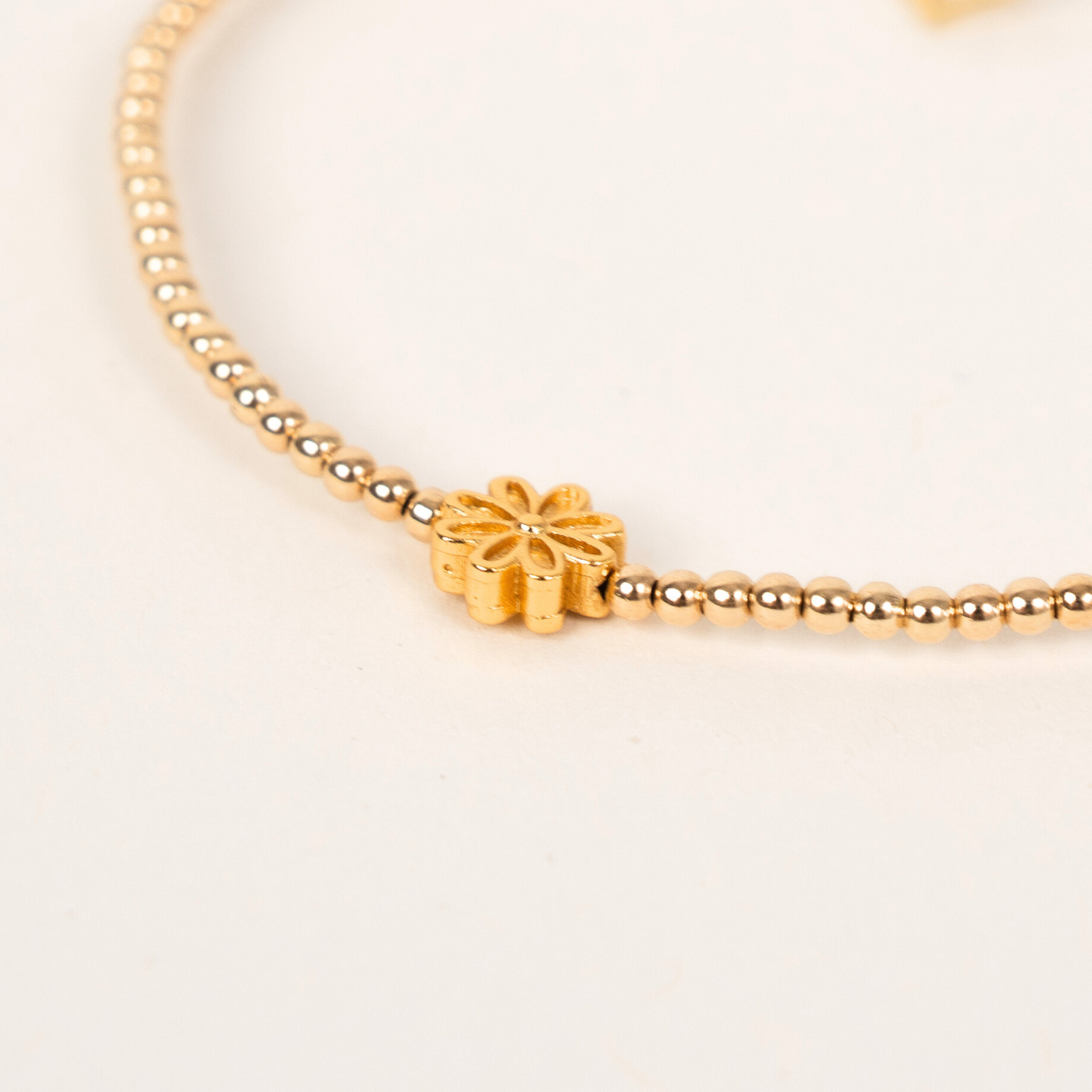 - Gold: 2mm gold-filled beads, 1 golden mini flower, signature ER charm